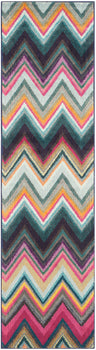 The rug's height of 3/8" strikes the perfect balance between a plush underfoot feel and effortless placement under furniture. The rich multi-colored palette features an eye-catching chevron pattern, adding dynamic visual interest and a pop of color to any room. Whether you're accenting a minimalist space or complementing a bold interior, this rug's pattern is sure to make a statement.