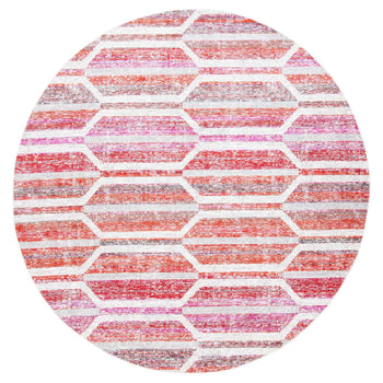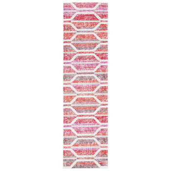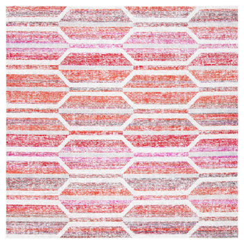 The striking design of this rug showcases a dynamic geometric pattern in a vibrant red and soothing ivory palette, injecting warmth and character into any setting. The image provided accurately captures the intricate detail and beautifully contrasting colors that will complement a multitude of decorating styles.