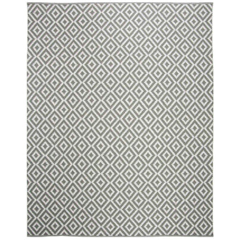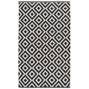 The rug boasts an eye-catching geometric pattern, a harmonious blend of black and ivory tones that exude sophistication and simplicity. This durable cotton rug features a handwoven construction that not only speaks to its superior quality but also ensures each piece is unique.