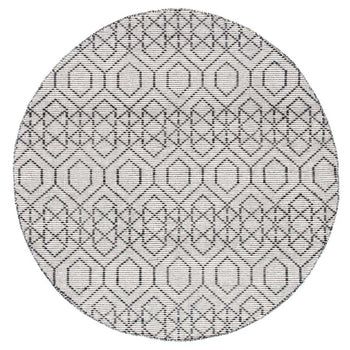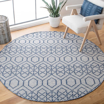 Crafted in the vibrant hues of navy and beige, this rug boasts a detailed geometric pattern that exudes a sense of free-spirited artistry and timeless appeal. The pattern, intricate and repeating, is reminiscent of classic Bohemian motifs with a touch of the contemporary, making it a beautiful statement piece for modern and eclectic interiors alike.