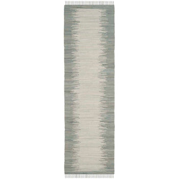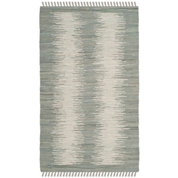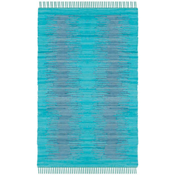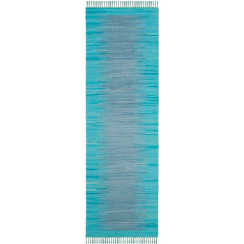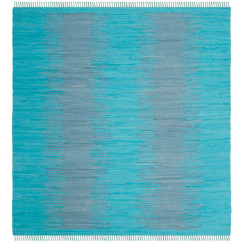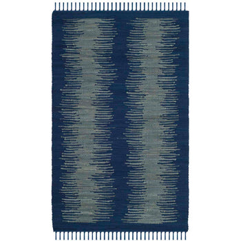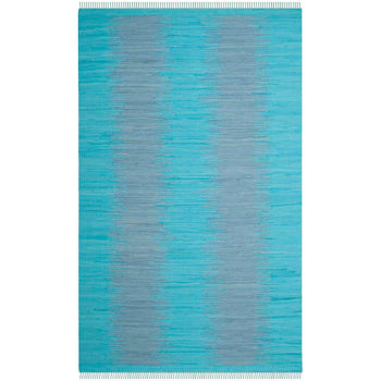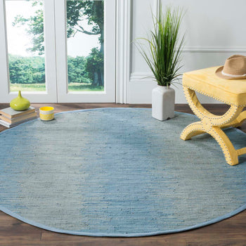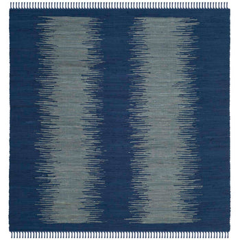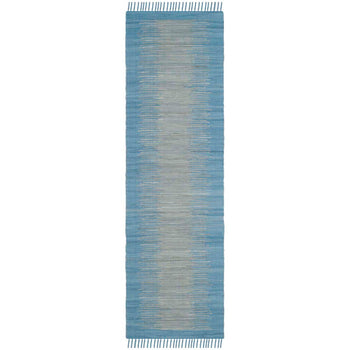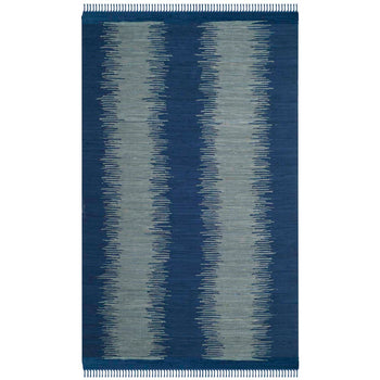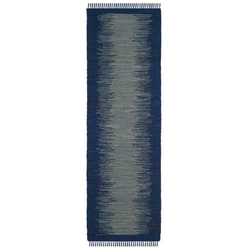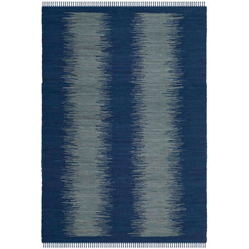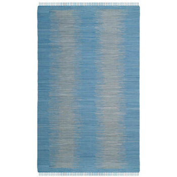 Crafted with meticulous care in India, our cotton rug showcases a harmonious interplay of light and dark blue shades, creating a soothing visual rhythm that enlivens your floors. The subtle textures and gentle gradient of the hand woven pattern provide a sense of depth and sophistication that only authentic handmade items can impart.