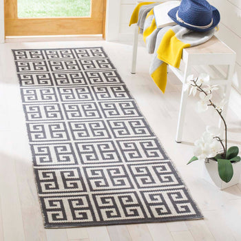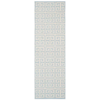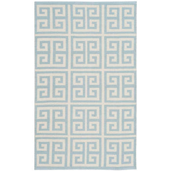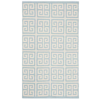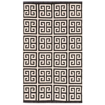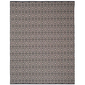 Designed and made with care in India, this rug celebrates the heritage of skilled artisanal craftsmanship, with each weave telling a story of culture and dedication. The rug's alluring pattern features a classic geometric Greek Key design that brings a sense of rhythm and structure, imparting a graceful visual symmetry perfect for injecting a rich, yet understated, style into your living space.