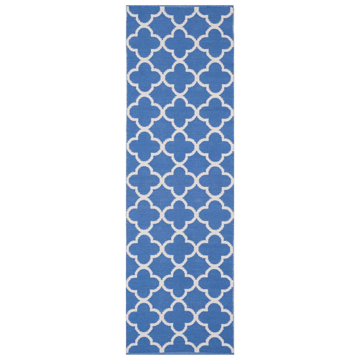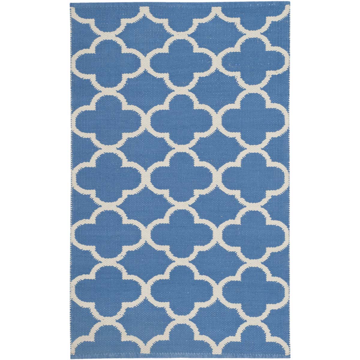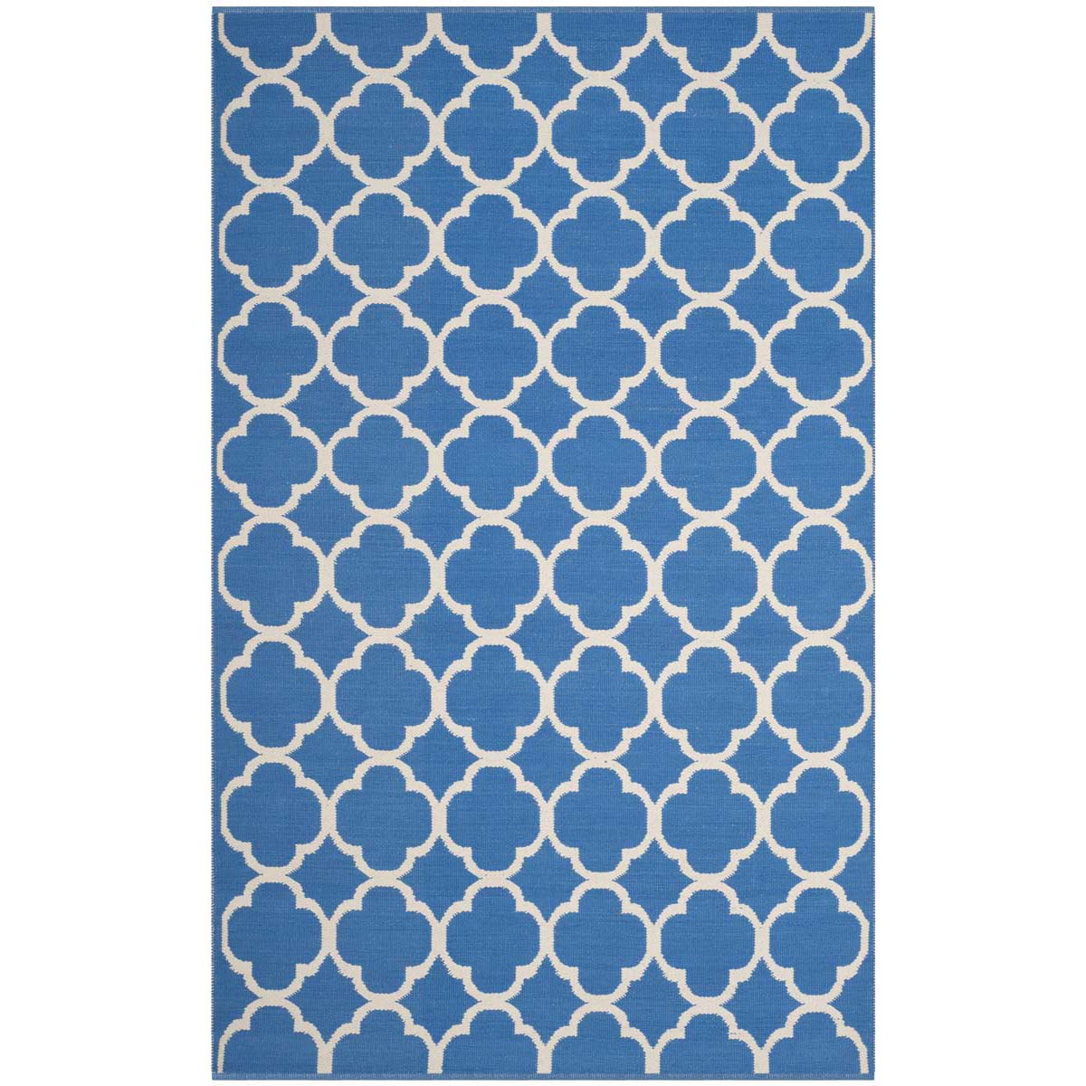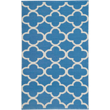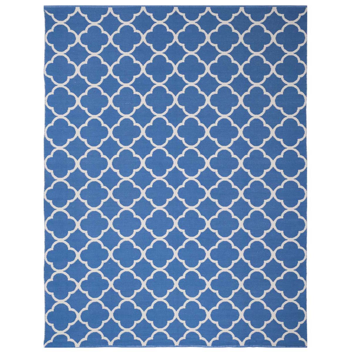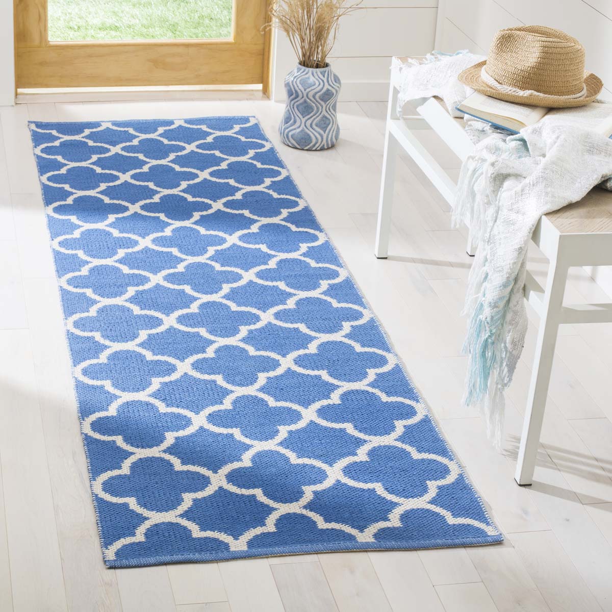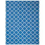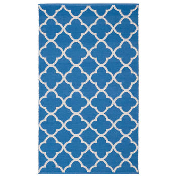 Adorned in a soothing palette of BLUE and IVORY, the rug presents a classic geometric pattern. This lattice design creates a sense of harmony and sophistication that can complement a variety of interior styles, from contemporary to traditional.