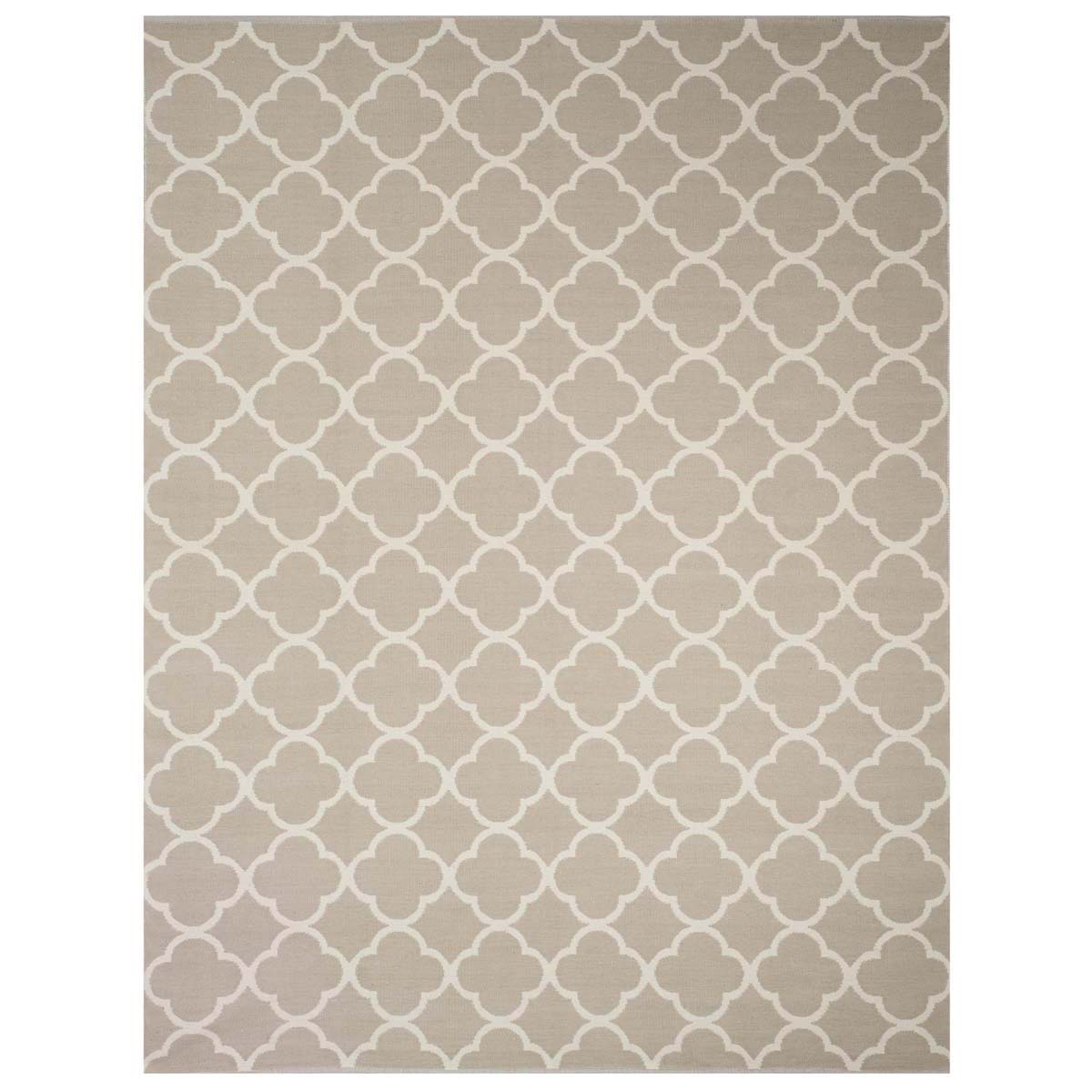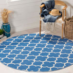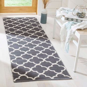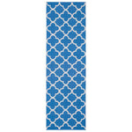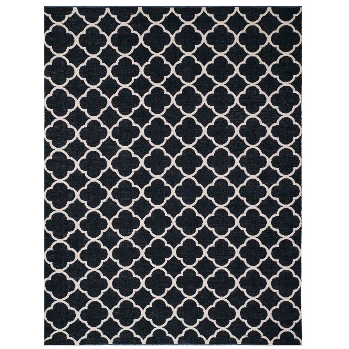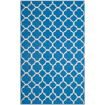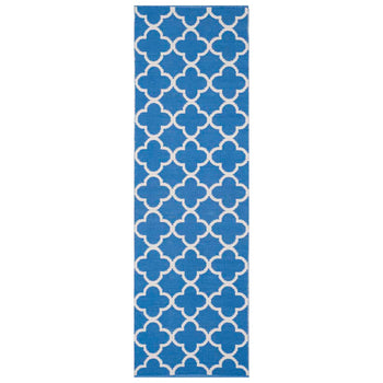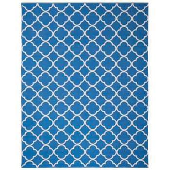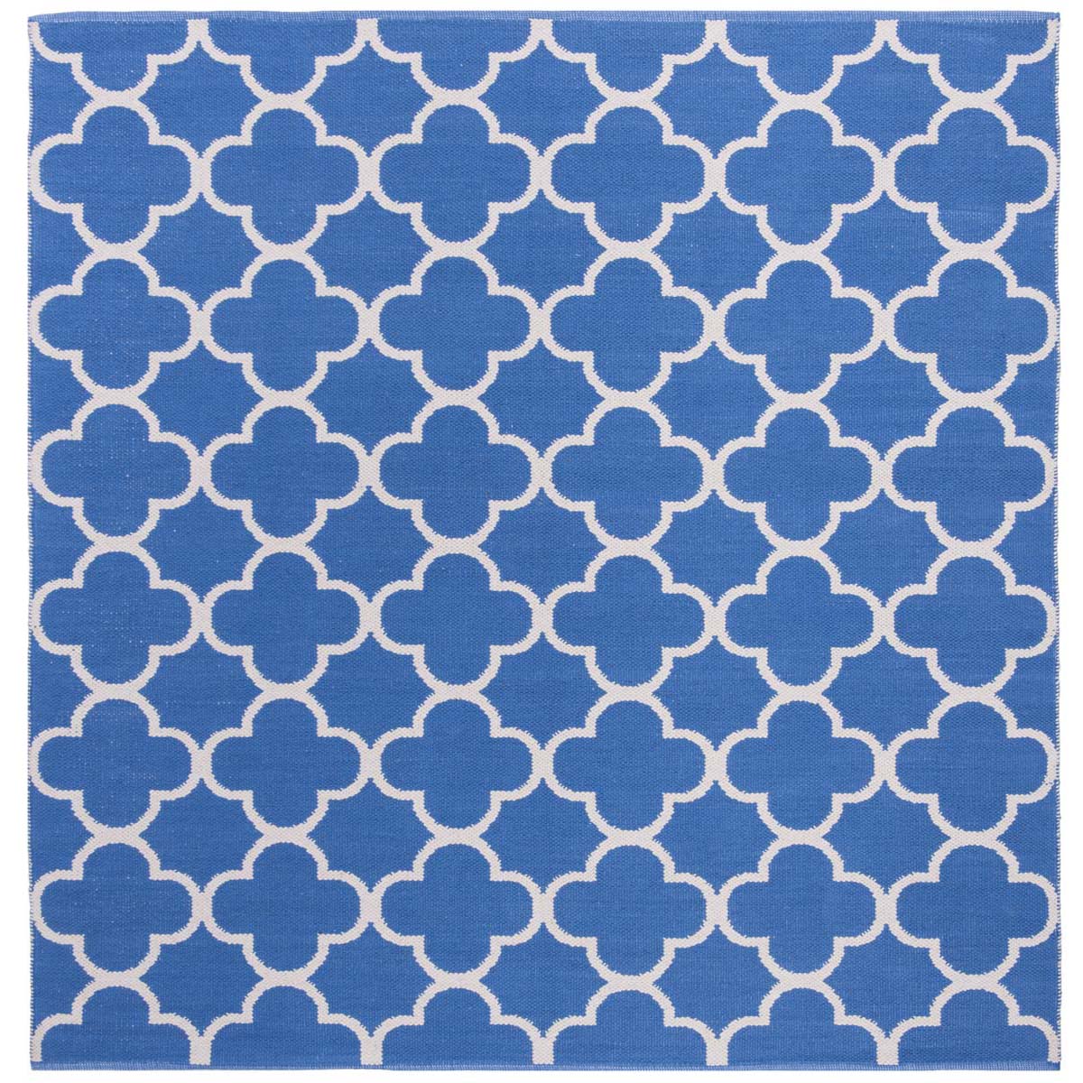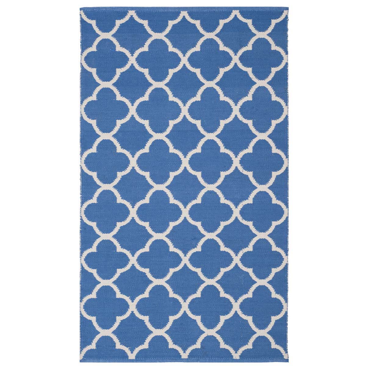 Adorned in a soothing palette of BLUE and IVORY, the rug presents a classic geometric pattern. This lattice design creates a sense of harmony and sophistication that can complement a variety of interior styles, from contemporary to traditional.