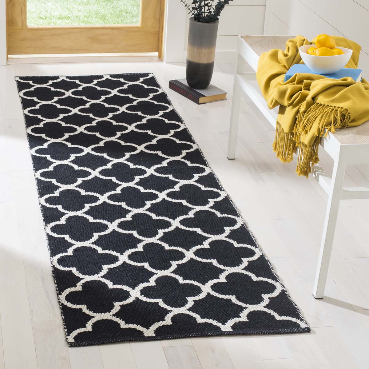 Meticulously constructed in India, the rug?s fabric is 100% premium cotton, offering both durability and softness underfoot. The handwoven technique imbues each rug with unique character, featuring slight variations that make it a one-of-a-kind addition to your decor.