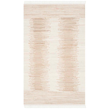 Crafted with meticulous care in India, our rug boasts a luxurious beige color palette, embodied in a subtle yet captivating pattern that adds texture and depth to your floors. The natural cotton fibers promise durability and softness underfoot, making it a delightful addition to your home.