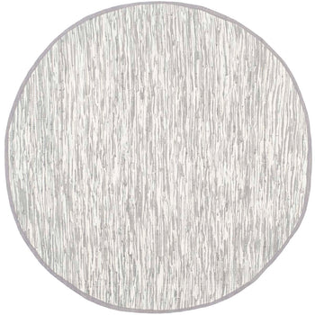The rug's pattern, visible in the provided image, features a harmonious blend of silver hues that form a serene, textured surface, exuding an understated elegance that complements a wide range of interior decors from modern minimalism to classic charm.