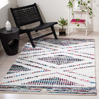 Hailing from the rich textile heritage of India, this rug is imbued with the finesse of traditional craftsmanship complemented by a modern aesthetic. The ivory base is adorned with a striking black pattern accented with hints of vibrant colors that add a cheerful ambiance to any room. The geometric motifs suggest a contemporary interpretation of tribal designs, inviting a sense of global inspiration into your home.