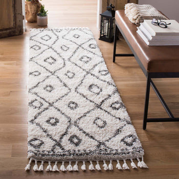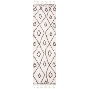 Indulge in the luxurious comfort and sophisticated style of our power-loomed runner rug, gracefully crafted in Turkey and sized at 2 feet 2 inches by 8 feet. The inviting ivory and grey palette merges harmoniously with a timeless Shag & Flokati design, uplifting any space with its plush 1 7/8-inch pile height. This stunning runner displays an intricate diamond pattern that exudes casual elegance, while the meticulously designed borders add a touch of artisanal charm. Constructed from durable polypropylene, this rug is not only soft to the touch but also OEKO-TEX certified, ensuring it meets high safety and environmental standards. Whether placed in your hallway, kitchen, or living space, our shag runner will be a delightful addition, bringing both comfort and chic versatility to your home decor.