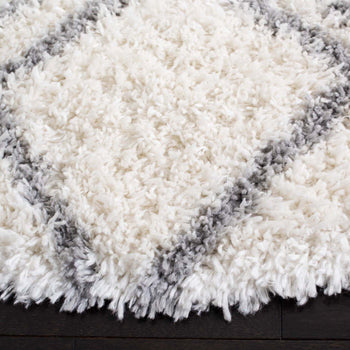 Featuring a beautifully intricate pattern, the rug showcases a harmonious mix of ivory and light grey colors, creating a subtle yet dynamic visual appeal ideal for modern and eclectic interiors. The tactile delight of its 1 1/2" pile height adds a layer of comfort underfoot, making it an inviting accent for hallways, entryways, or alongside your bed.