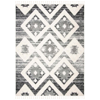 The shag & flokati style is given a modern twist with a captivating diamond pattern that dances across the rug in shades of grey and ivory. This bold design is a statement of timeless elegance, infusing your space with a chic aesthetic while retaining a sense of warmth and comfort.