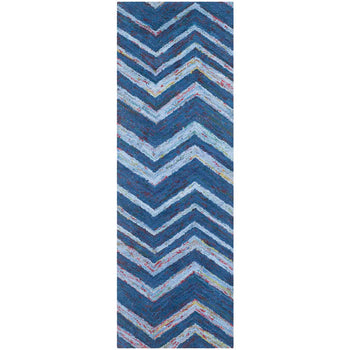 This piece exudes a timeless charm with its intricately detailed chevron pattern, blending various shades of blue to create a visual masterpiece that is both engaging and contemporary. The textural and dimensional qualities add to the rug?s unique appeal, making it a captivating addition to any room.