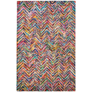 The intricate zigzag pattern showcased in the image encapsulates a playful yet refined aesthetic. Its MULTI color palette bursts with a spectrum of shades, bringing warmth and energy to any room. The chevron design adds a dynamic visual interest that is both modern and timeless, making this rug a versatile addition to your home that will complement a range of decor styles.