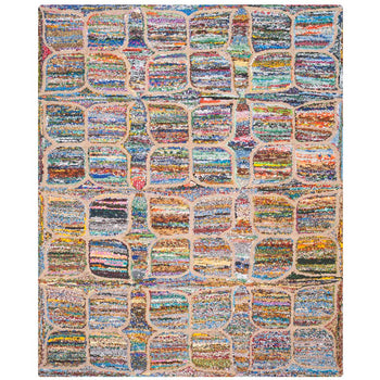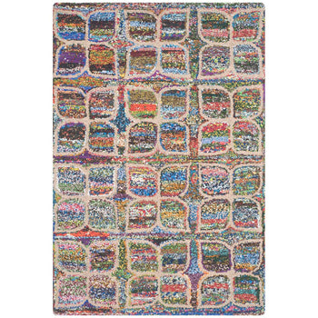 With a comfortable 1/2" pile height, this rug is not just a visual delight but a haven for your feet. The unique pattern, as shown in the image, combines a plethora of hues in a dynamic grid-like design interspersed with dashes of exuberant shades, akin to a celebratory confetti that infuses warmth and texture into your interior design.