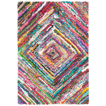 Introducing our exquisite 2' x 3' accent area rug, a vibrant masterpiece that brings the essence of Indian craftsmanship into your home. This hand-tufted treasure is meticulously crafted from the finest cotton, ensuring a soft touch and lasting durability.