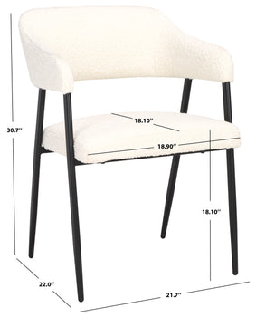 Add a stylish and cozy seat to your table with our Naoko dining chair. Offering a fresh take on mid-century designs, our dining chair impresses with its sleek and sophisticated profile. It's streamlined and subtly curved back and arms are padded to offer a dose of comfort. The rich white boucle upholstery creates an eye-catching contrast with the slender, black steel legs. Both airy and plush, our dining chair offers a perfect blend of style and comfort. It remains a stunning addition anywhere from the kitchen and dining to your home office.