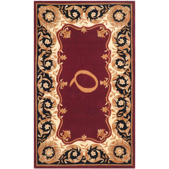 Enhance your living space with the timeless elegance of our Maroon and Beige Wool Area Rug. Measuring a versatile 3' x 5', this small rectangle rug is a perfect accent piece for any room in need of a touch of sophistication.