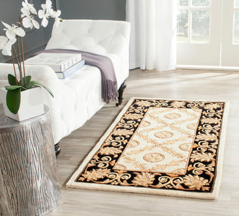 Drawing inspiration from traditional designs, this runner features a harmonious blend of ornate medallions and leaf motifs, encased within a bold, contrasting border that commands attention and exudes luxury. The rich ivory background serves as a serene canvas for the intricate black patterns, creating a stunning visual balance that elevates any hallway or narrow space.