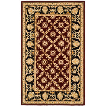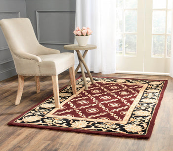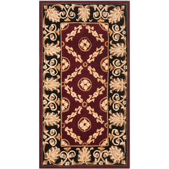 Elevate your space with this luxurious, hand-tufted accent rug, perfectly sized at 2 feet by 3 feet for versatile placement in any room. Skillfully crafted in China, our wool pile rug features a rich burgundy center framed by an elegant black border. The intricate, traditional pattern showcases a regal medallion centerpiece, surrounded by symmetrical floral motifs that echo the timeless beauty of classic design.