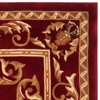 Embrace the elegance of fine design with this exquisite 6' X 6' Round area rug, showcasing a timeless burgundy color palette that commands attention in any room. This hand-tufted masterpiece is a true testament to skilled craftsmanship, utilizing premium wool pile to create a dense, plush texture that offers both comfort and durability.