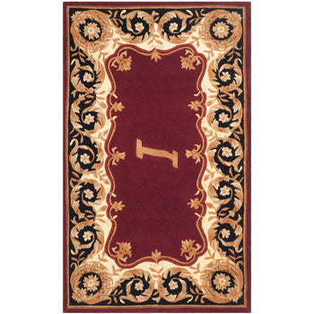 Featuring a sophisticated maroon and beige color palette, this rug is adorned with an exquisite pattern that combines classic floral accents with ornate borders. The central maroon field is beautifully framed by the intricate beige motifs, creating a focal point that is both stately and inviting.