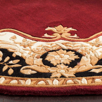 Featuring a sophisticated maroon and beige color palette, this rug is adorned with an exquisite pattern that combines classic floral accents with ornate borders. The central maroon field is beautifully framed by the intricate beige motifs, creating a focal point that is both stately and inviting.