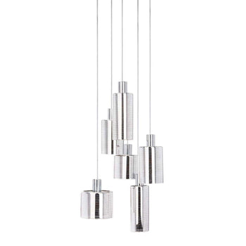 As brilliant and coveted as contemporary jewels, this luxurious modern pendant elevates any space. Crafted to highlight the beauty of each size of its 6 different metal lights, it features a bold polished chrome finish that ensures dramatic illumination.