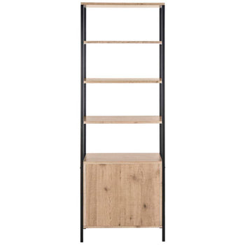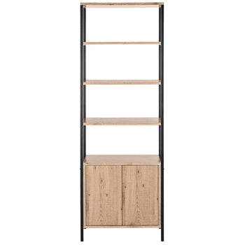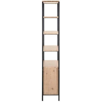 Naturally beautiful, this retro Natasha Etag?re brings Mid Century style to any Decor. Crafted with rich oak and black iron, designers love to pair them next to the sofa for luxurious layers of open and closed door storage.