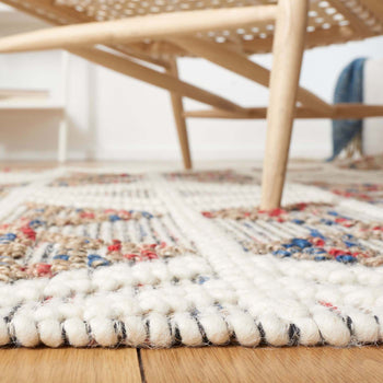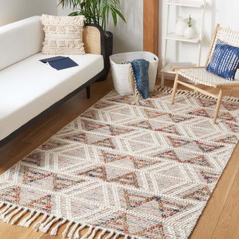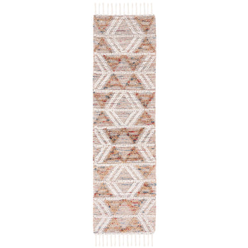 Our runner?s enchanting Ivory and Red color palette creates a warm, inviting atmosphere, while the intricate rug pattern ? as shown in the image ? draws the eye with its geometric motifs and hints of earthy tones. The interplay of the diamond designs and the linear accents lend a versatile style suited for both contemporary and traditional interiors.