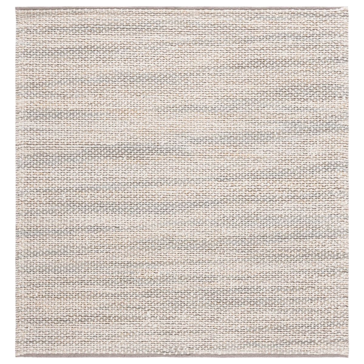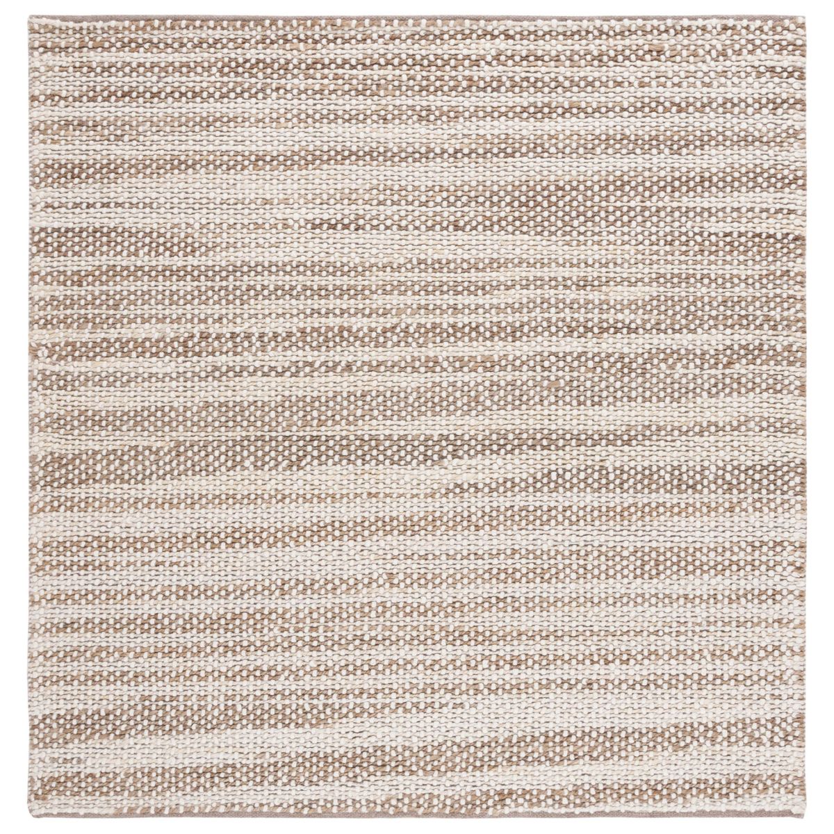Colored in a sophisticated palette of natural and beige hues, the rug imparts a serene and organic feel, making it an easy match for any decor. The understated elegance of the color scheme is elevated by the textured pattern visible in the image, showcasing a series of rhythmic lines and dots that provide a subtle yet dynamic visual interest.