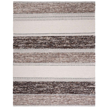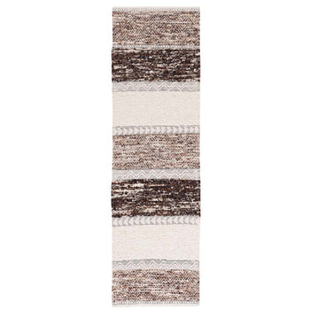 Crafted in India, a country renowned for its rich textile heritage, our runner rug features a tasteful combination of brown and ivory hues, creating a warm and inviting ambiance in any room. The alternating patterns lend a dynamic and textured look, while the hand-woven construction ensures each piece is truly unique.
