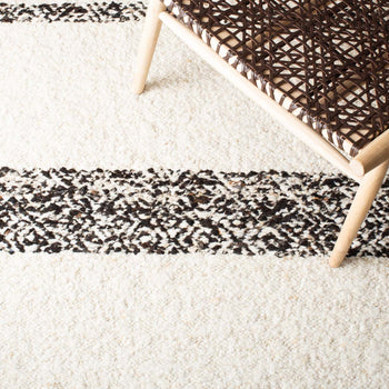 The rug features an eye-catching pattern that embodies a harmonious blend of black and ivory hues, creating a contrasting visual appeal that exudes both contemporary flair and timeless grace. The use of 90% wool and 10% cotton in its construction ensures a soft, luxurious feel underfoot while also promising durability and ease of maintenance.
