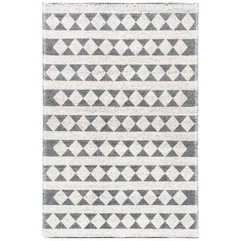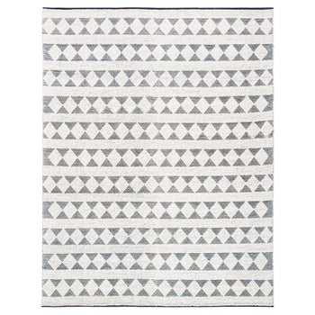 The rug's design features a dynamic geometric pattern with an interaction of diamonds and linear motifs, striking a balance between boldness and simplicity. This eye-catching pattern is versatile enough to be a statement piece while still harmonizing with your existing home furnishings.