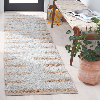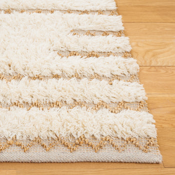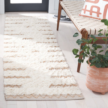 Embracing the warm and inviting hues of ivory and natural, this rug features a captivating design with unique patterns that evoke a sense of worldly adventure and artisanal craftsmanship. The earthy tones seamlessly weave together, highlighted by intermittent lines with understated embellishments that capture the eye and soul.