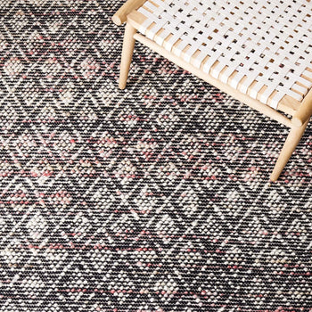 Featuring a captivating pattern as depicted in the image, this rug showcases a sophisticated geometric design that's enriched with ivory and red hues to create a warm and inviting atmosphere. The interplay of the intricate patterns and the subtle color variations lend an elegant, cultural touch to your decor while maintaining a contemporary edge.