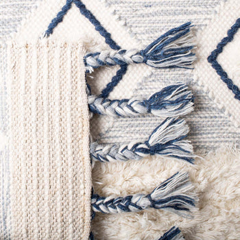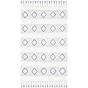 Adorned with a timeless diamond pattern, our Ivory / Blue runner rug effortlessly complements a range of interior decor themes. The crisp ivory background is beautifully contrasted by the serene blue motifs, creating an eye-catching design that's both bold and approachable.