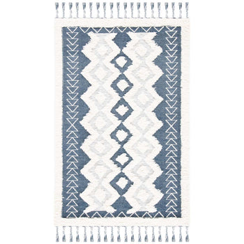 Discover the perfect addition to your hallway or narrow space with our exquisite handwoven runner rug, size 2'-3" X 8', crafted with a luxurious height of 1". Immerse yourself in the rich tapestry of bohemian style, as this runner features a harmonious blend of ivory and blue tones that evoke a serene yet vibrant atmosphere in any home.