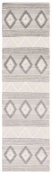 Adorned with a timeless ivory and grey color palette, the runner features a refined pattern that exudes a sense of sophistication. The harmonious diamond motifs and subtle geometric details throughout the design create a contemporary aesthetic that enhances any decor.