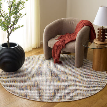 The rug features a harmonious blend of gold and ivory hues, creating a warm and inviting ambiance in any room. The meticulous construction technique lends this rug exceptional durability and a texture that feels luxurious to the touch.