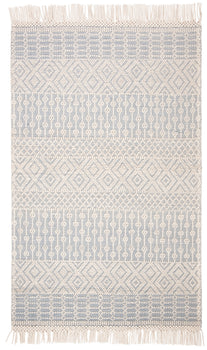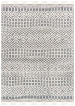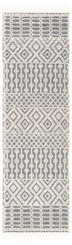 Drawing inspiration from the artistic heritage of bohemian design, this rug features a mesmerizing pattern that captures the eye and sparks conversation. The rhythmic interplay of ivory and grey forms a sophisticated geometric pattern that evokes a sense of wanderlust and free-spirited style typical of Bohemian decor.