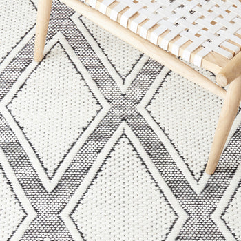 The stunning geometric diamond pattern radiates sophistication in a classic Ivory and Black color palette, making this runner an effortlessly chic addition to any hallway or narrow space. Each diamond is encased in a textured lattice framework, providing a pleasing tactile experience underfoot.