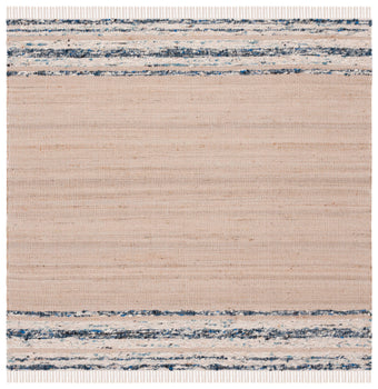 The natural hues serve as a versatile backdrop, while the navy accents bring depth and character to the design. The pattern, as showcased in the image, features a minimalist aesthetic with chic stripes, adding a contemporary flair to any interior.