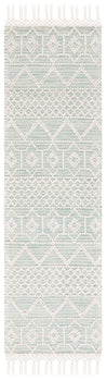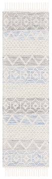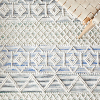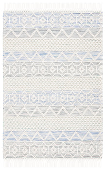 Transform your hallway with this exquisite Bohemian runner. Sized at 2 ft 3 in by 8 ft, it fits seamlessly into narrow spaces, adding a touch of elegance. The subtle combination of ivory and light blue complements a variety of decor styles, creating a serene and inviting atmosphere. Crafted in India with a meticulous flat weave technique, this rug beautifully combines wool, polyester, and cotton for a unique texture. Its 3/8 inch height provides a smooth, unobtrusive presence while enhancing your floor space. Elevate your living area with this stylish runner, offering an effortless blend of artistry and comfort.