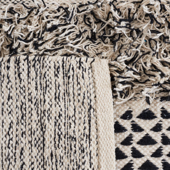 Introduce elegance to your space with this black and ivory runner rug, designed in a bohemian style that effortlessly complements any decor. Measuring 2 feet 3 inches by 9 feet, this flat weave cotton rug from India is perfect for hallways and narrow spaces. The sleek height of 1/4 inch allows it to fit effortlessly under furniture while providing a smooth walking surface. Its simple yet sophisticated appearance blends seamlessly with various color palettes, making it a versatile addition to your home. Whether placed in a well-trafficked corridor or a quiet nook, this runner rug adds a touch of understated charm and subtle luxury. Embrace the beauty and style it brings to your living space with its thoughtful design and masterful craftsmanship.