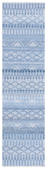 Elevate your home with the timeless elegance of our Hand-Woven Runner Rug, meticulously crafted in the richly artistic heritage of India. This stunning 2'-3" X 9' runner rug boasts a serene palette of blue and grey, infused with a harmonious blend of patterns that exude a sense of calm sophistication.