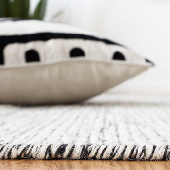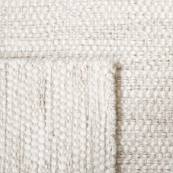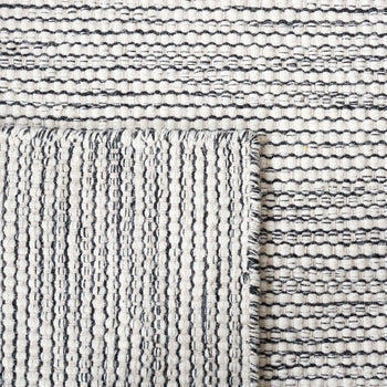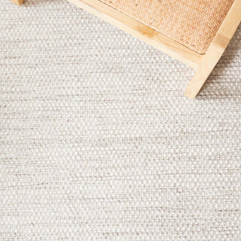 Elevate your space with the understated elegance of our Hand-Woven Wool-Cotton Area Rug, now available in a versatile 3' X 5' dimension. Imbued with a serene ivory and light grey color palette, this small rectangular rug exudes a timeless charm that seamlessly complements any decor.