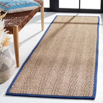Introducing our elegant 2' X 3' area rug, the perfect accent to enhance any room in your home with its timeless natural and blue color scheme. This exquisite piece is crafted using a state-of-the-art power-loomed technique, ensuring a design that's both intricate and resilient. Made of high-quality seagrass, this rug boasts a tactile pleasure underfoot with a comfortable 3/8" pile height.