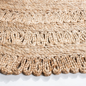 Crafted from high-quality jute, this round rug boasts a modest pile height of 1/4", providing a comfortable underfoot with a touch of textural depth. The beautiful natural shade seamlessly complements a variety of color schemes, while its durable construction ensures it will gracefully withstand the rigors of everyday life.