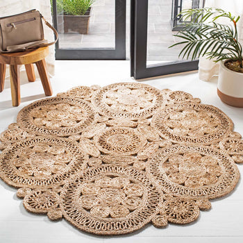 Elevate your living space with the essence of natural beauty and the art of traditional craftsmanship. Introducing our exquisite 4' X 4' Round area rug, meticulously hand-woven by skilled artisans from the vibrant lands of India. Crafted from the highest quality jute material, this rug showcases a stunning combination of durability and eco-friendliness.