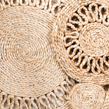 Immerse yourself in the intricate patterns inspired by contemporary design, where each woven spiral and loop weaves a story of its own, reminiscent of nature's endless spirals and organic circular forms. The natural color palette evokes a sense of earthy charm and purity, effortlessly complementing any room's decor while offering a touch of understated elegance.